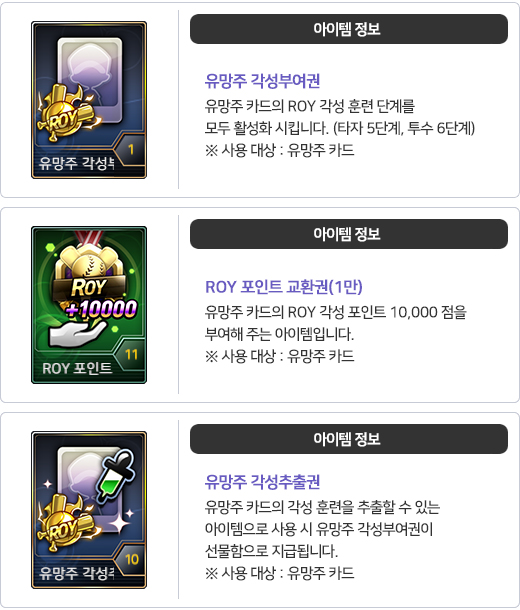 ¨î À¯¸ÁÁÖ Ä«µå ROY °¢¼ºÀº ±âÁ¸ °È ÄÁÅÙÃ÷ ´Þ¼ºµµ¿¡ ¿µÇâÀÌ ¾øÀ¸¸ç,