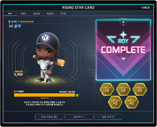 ¨ë Ãß°¡ °È·Î ½ºÅÈÀÌ ¸ðµÎ ÈÆ·ÃµÇ¸é À¯¸ÁÁÖ ROY °¢¼ºÀº ¿Ï·á(COMPLETE)µË´Ï´Ù.