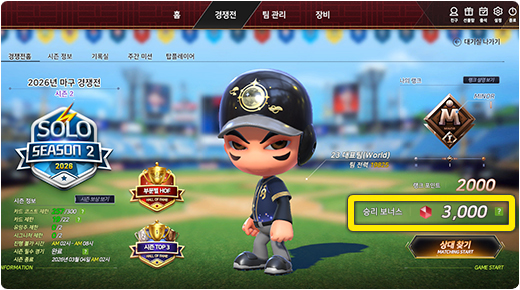 ¨ç °æÀïÀü SOLO '½ÃÁð2' ±â°£ µ¿¾È ½Â¸®ÇÑ È½¼ö¿¡ µû¶ó ½Â¸® º¸³Ê½º º¸»óÀÌ Ãß°¡ Áö±ÞµË´Ï´Ù.